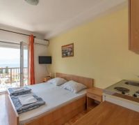 Ubytování je ve 2, 3 a 4 lůžkových studioapartmánech s balkónem, vlastní kuchyňkou, sociálním zařízením a klimatizací - některé apartmány mají výhled na moře. Apartmány jsou vzdáleny jen cca 150 m od moře. V suterénu naleznete restauraci a terasu pro společné posezení i místem pro cvičení nebo tanec.