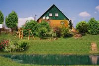 Ubytování pro 8 osob ve venkovském domě s tradiční saunou stojícím v zahradě blízko malé řeky a rybníka.
