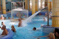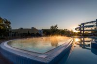 Termální koupaliště poskytuje celoroční služby ve svém kombinovaném krytém bazénu s propojením na vnější bazén s teplotou vody 38 - 40 °C. Venkovní bazén nabízí možnost koupání pod ochranou sálající páry i v nejtužší zimě (hloubka 0,96 m, teplota vody 38 - 40 °C).
