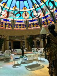 Saunový svět (finská sauna, parní sauna, bylinová sauna, infrasauna) má velkou odpočívárnu s lehátky, relaxační hudbou a prosklenou střechou.