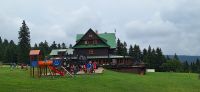 Chata Paprsek je křižovatkou tří turistických cest. My se vydáme po zelené značce přes Větrov, kde stojí Dalimilova rozhledna přes Starý kopec přímo do Starého Města.